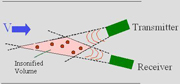 Based on this assumption, we can place two pairs of ultrasonic sensors along the flow direction to pick up the turbulence signature. Obviously, the upstream sensor will detect a flow signature L/V seconds earlier than the downstream one, where L is the space between the two sensors and V is the flow velocity. By comparing the signals from the two sensors, we are able to determine the time delay, thus, to calculate the velocity.